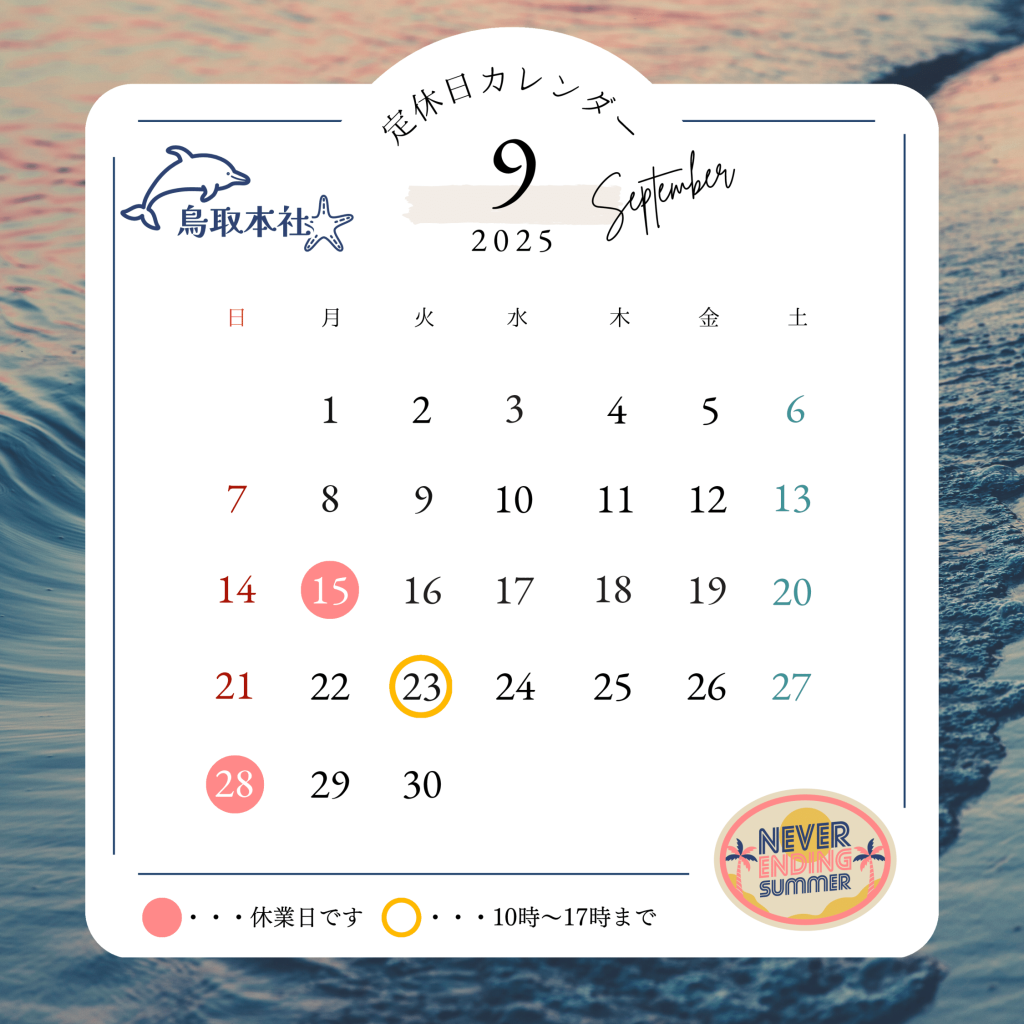 ※鳥取本社 «23日» は10時~17時の営業時間となっておりますのでご注意くださいませ。