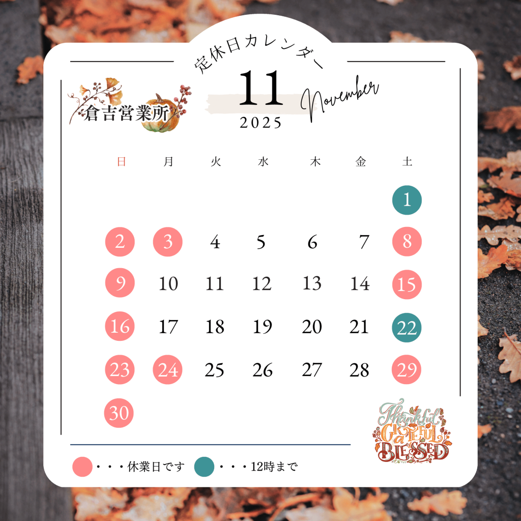 11月の休業日のお知らせです🍂
