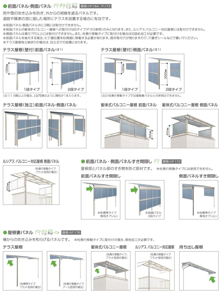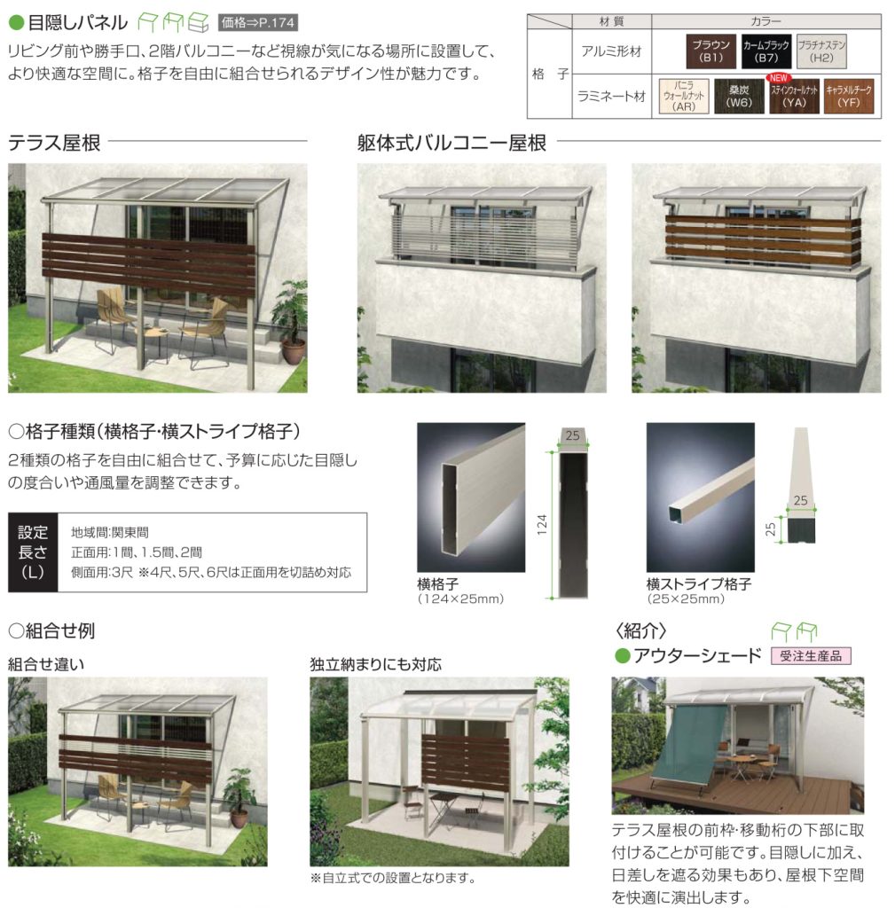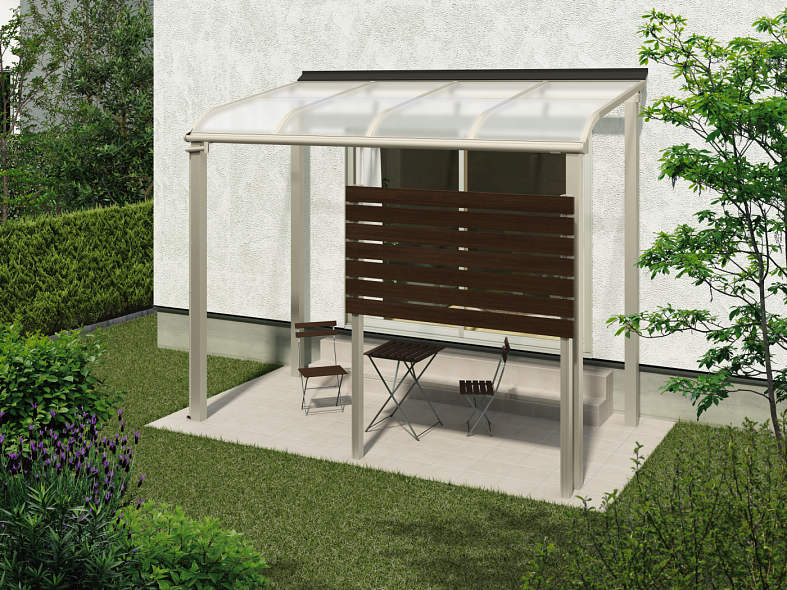 また、前や側面からの雨や雪を防ぐパネル・おしゃれなだけでなくプライバシーを守ることの出来る目隠しとして格子材を設置可能。