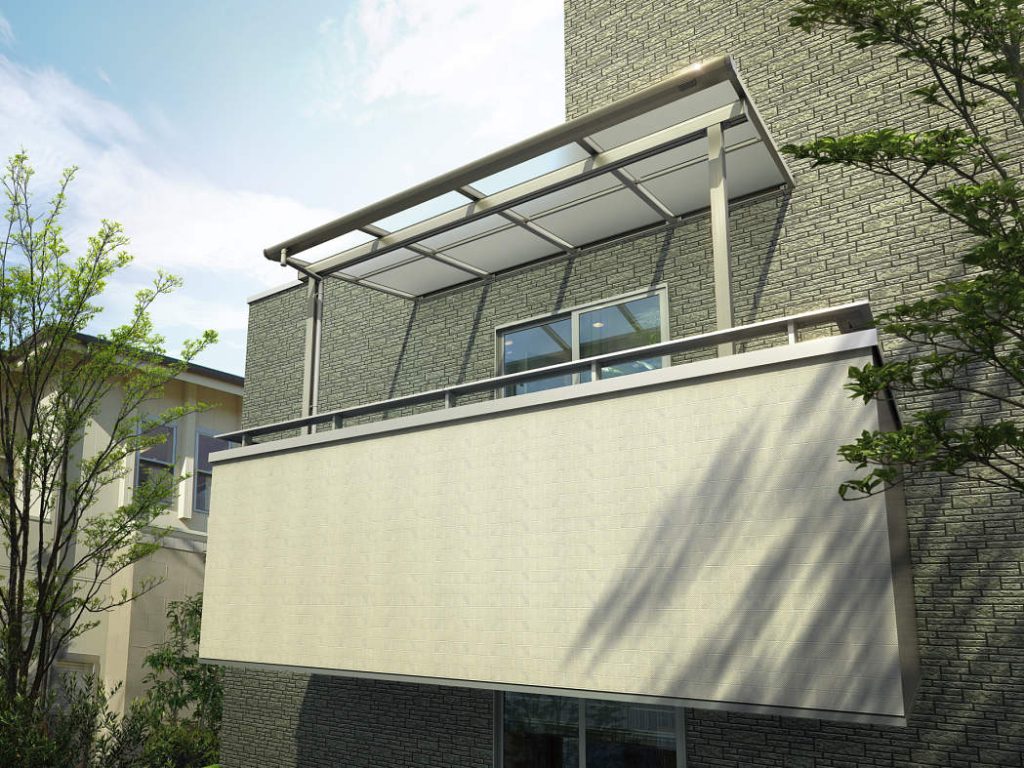1階だけではなく2階や3階のバルコニー屋根としても対応しており、持ち出し屋根では柱のないすっきりとした納まり。