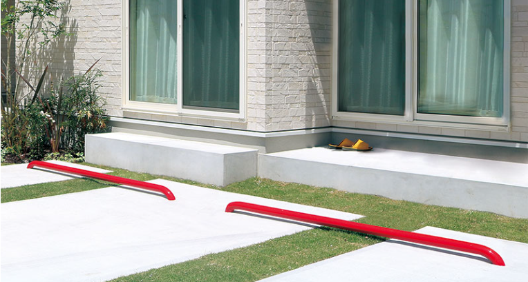 住まいのアクセントになる車止めをコンセプトとした商品。丸パイプによるやさしい存在感が魅力となっており、多彩なカラーにより駐車スペースのアクセントにもなります。