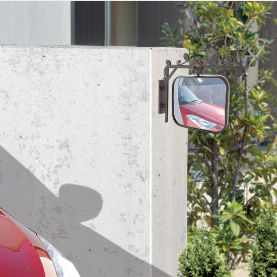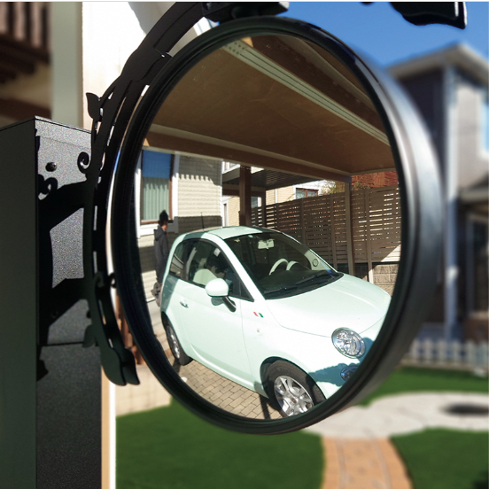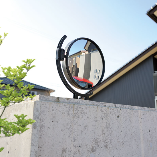 見える面積が大きく、人気の角型タイプから、デザインと機能を両立したガレージミラーがあり、住宅のテイストにお洒落に溶け込みます。