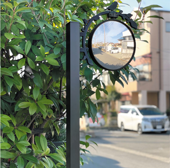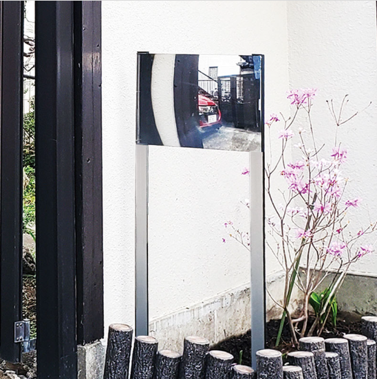 死角が自然と目に入り安全確認が出来ると共に出っ張らないため違和感のないデザインとなっております。車出口や自立埋込タイプがあるためご要望に合った商品をお選びいただくことが可能となっております。